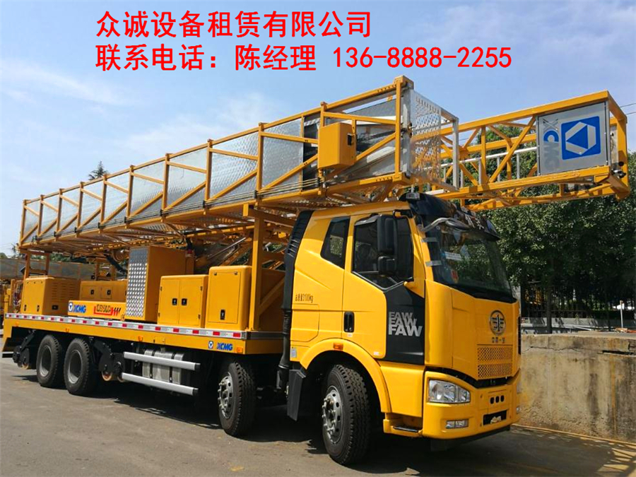 成都業(yè)政邦設(shè)備租賃有限公司主要租賃項目有:橋梁檢測車出租、桁架式橋梁檢測車出租、折疊式橋梁檢測車出租、橋梁監(jiān)測車出租、橋梁檢測作業(yè)車出租、橋檢車租賃、檢測車租賃、橋梁檢測車租賃、路橋檢測車租賃、橋梁施工車租賃、橋梁專用車租賃等服務(wù)。作業(yè)高度:14米、16米、18米、20米、22米不等。聯(lián)系電話:陳經(jīng)理 188-4834-3755