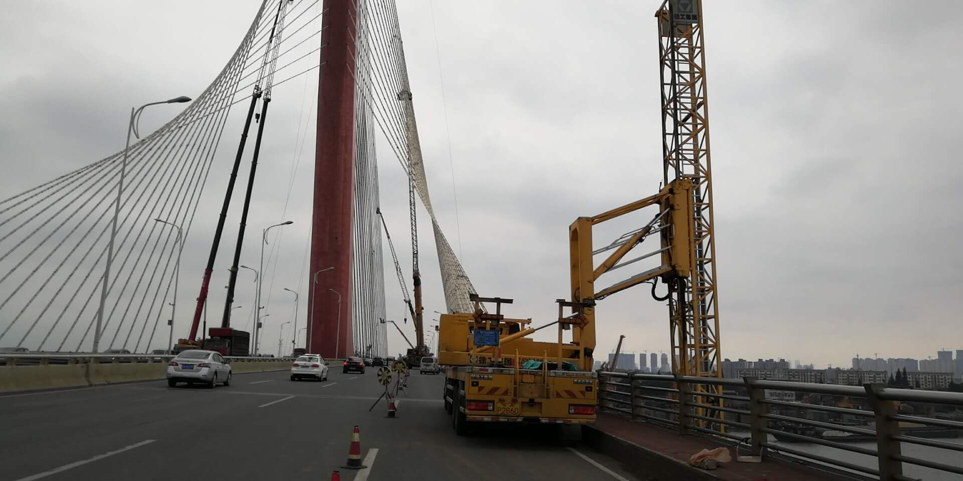 橋梁監測,一般采用測量學方法利用橋梁檢測車進行。根據實際情況,按照測量出額橋梁觀測的基本理論。建立相應的觀測網點和測量路線,利用全站儀、精密水準儀、測距儀、GPS全球定位系統等測量儀器設備,在獨立坐標系中,測量橋梁變位控制點的坐標。然后,通過對各次測量所得出的僑聯變位控制點坐標比較,分析判斷橋梁結構長期變位的發展趨勢;通過結構計算分析,得出由長期變位所產生的結構內力、應力增量。綜合上述兩個方面及結構受力特點,設計、配筋等結構基本情況,就可以宏觀判斷橋梁結構的安全性能,提出相應的處理措施或建議。